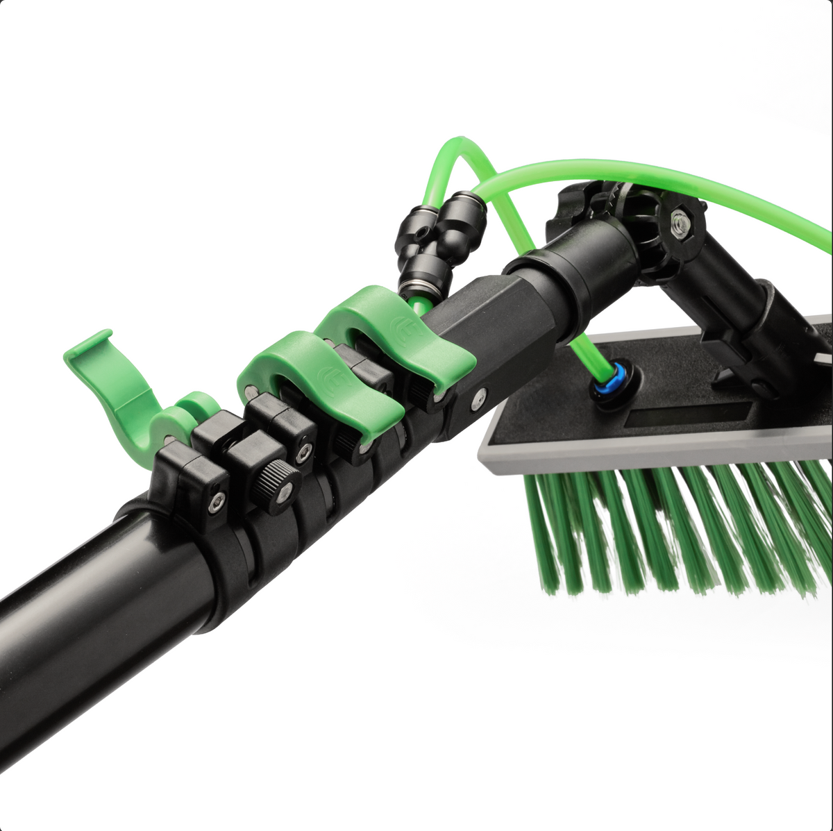 Unsere Full Carbon Pro Teleskopstiele sind leicht, robust und langlebig. Sie eignen sich ideal zum Reinigen von Sonnenkollektoren, Fenstern, Fassaden, Rollläden und vielem mehr. Die Teleskopstiele werden mit einer professionellen, innovativen Allround-Bürste mit praktischer Gummischutzkante und einem Wasseranschluss geliefert, der mit Standardkupplungen wie denen von Gardena kompatibel ist. Dank der hochwertigen Aluminiumqualität sind die Stiele langlebig und bieten ein hervorragendes Preis-Leistungs-Verhältnis.