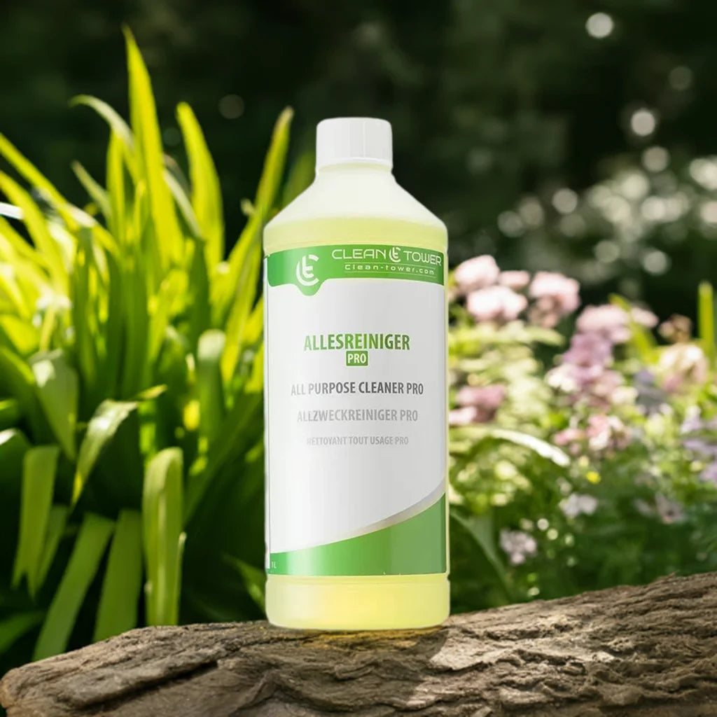 \nAllesreiniger Pro ist ein leistungsstarker, vielseitiger Reiniger, der für jede Oberfläche geeignet ist. Ob verschmutzte Außenwände oder Fensterrahmen mit hartnäckigen Flecken – Allesreiniger Pro sorgt dafür, dass alles wieder strahlend sauber wird. Mit diesem Produkt sieht alles wieder wie neu aus. Verwenden Sie ihn in Kombination mit dem Seifenspender, um die perfekte Menge an Allesreiniger Pro zu dosieren.